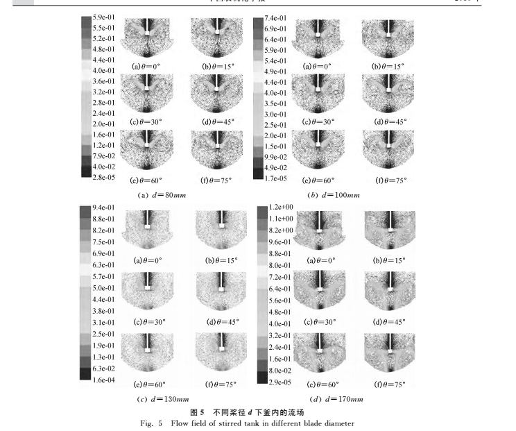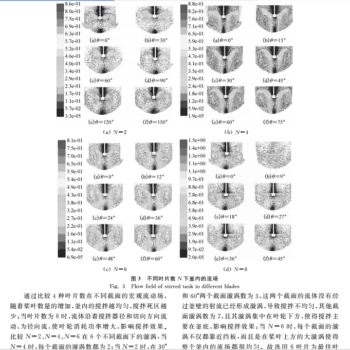 種不同葉片數(shù)下能表達(dá)釜內(nèi)整個宏觀流動場的模擬結(jié) |